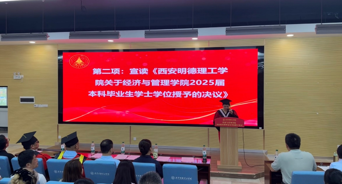 在庄严的国歌声中,仪式正式拉开帷幕。许萍宣读了《LETOU国际米兰官网关于经济与管理学院2025届本科毕业生学士学位授予的决议》,她对2025届同学们顺利完成学业,开启人生的新征程表示热烈祝贺。