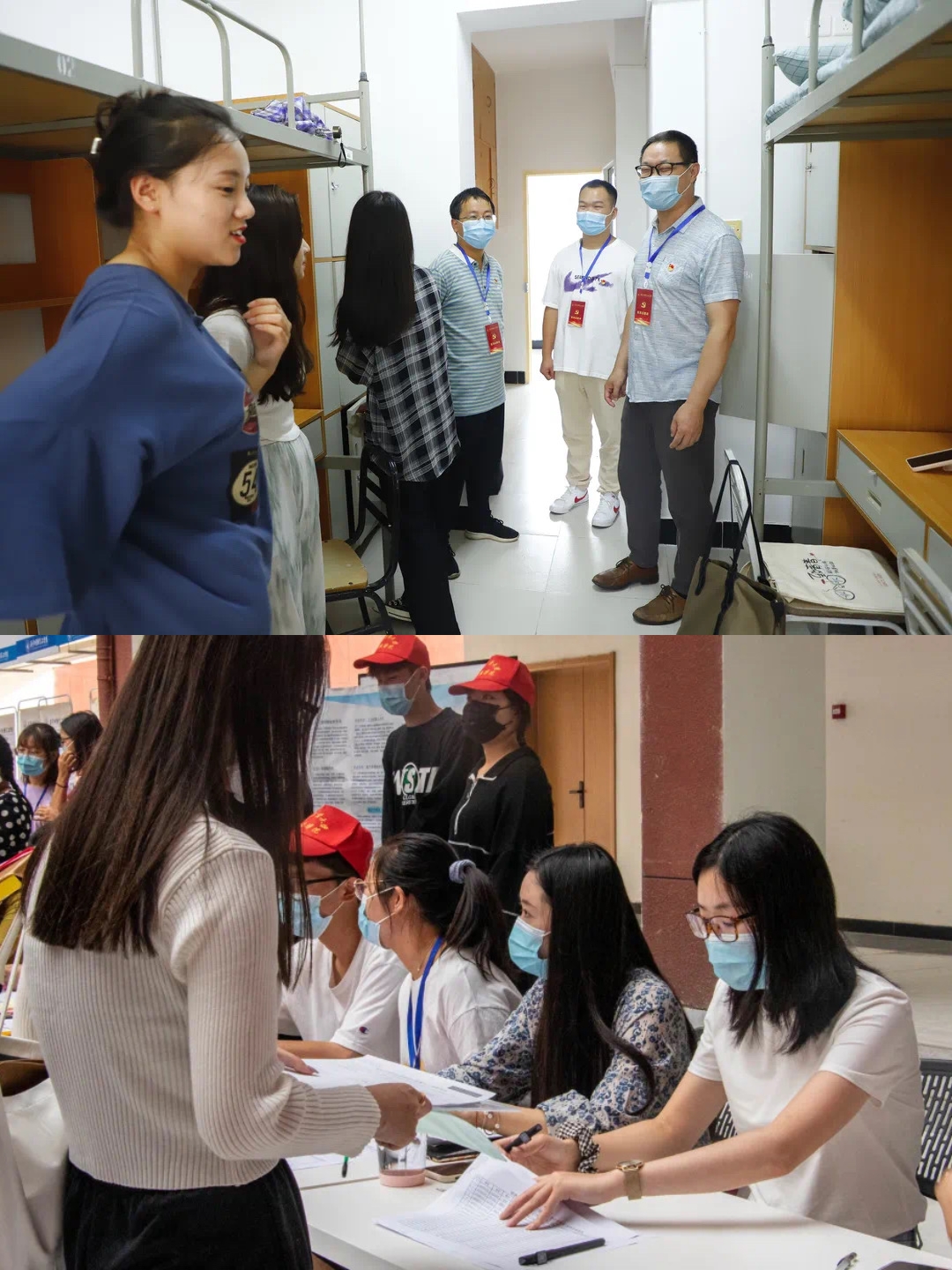 践行党员初心使命,服务新生入学。经济与管理学院党委动员全体党员领导干部、专职教师、管理人员、辅导员和学生党团干部积极加入新生入学教育队伍,全面助力新生转型。2021级新生辅导员通过建立新生QQ交流群,搭建起与新生报到前的互动交流,进行实时在线答疑,耐心回答新生各类问题,利用学院微信公众号推送萌新攻略系列文章,服务新生安全、顺利报到;党委书记何文举带领辅导员深入新生宿舍检查家具设施配备情况,发现问题现场解决,确保新生入住舒心;新生报到期间,学院师生党员广泛参与迎新工作,学院领导亲临现场、深入新生宿舍进行指导和看望,让新生感受到家的温暖。