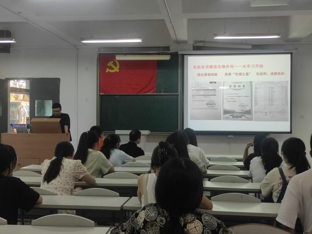 为进一步加强毕业生党员党性教育,增强青年党员的时代责任感和使命感,激励他们在未来的工作岗位上充分发挥党员的先锋模范作用。6月23日晚,经济与管理学院在培德楼112教室召开2022届毕业生党员教育大会,本次会议采取线上线下相结合的形式开展,学院党委书记兼行政副院长何文举、副书记冯纪潮、学生第一党支部书记罗夫惠和在校的毕业生党员参加了会议。会议由学生第一党支部书记罗夫惠主持。