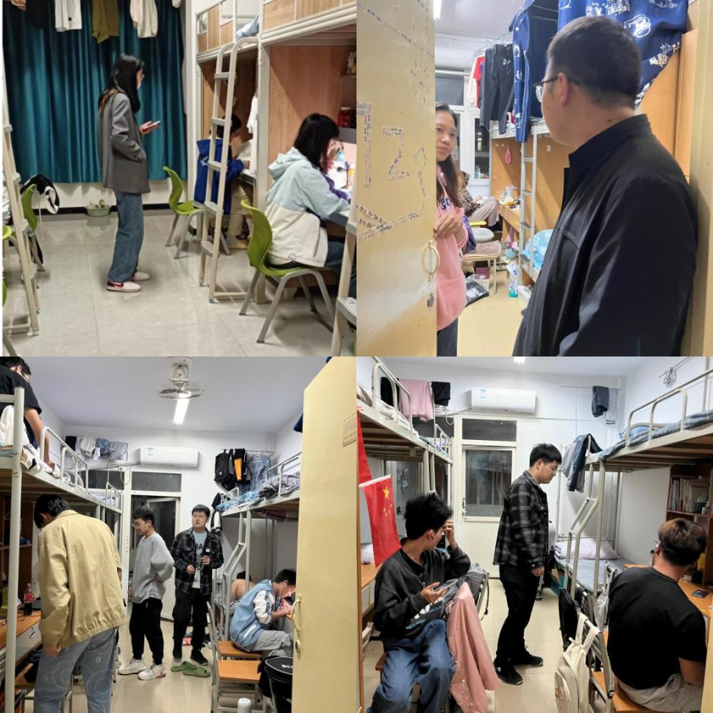 各年级辅导员深入学生公寓,排查了学生宿舍卫生状况、用电安全、火灾隐患、管制刀具等,重点掌握学生的思想动态,进一步加强宿舍安全和人身安全防范,以及疫情防控等。在检查过程中老师与同学们进行亲切交谈,了解学生日常生活状况,遇到的困难,并耐心解答、积极回应学生关切的问题。检查中,对学生公寓存在的问题罗列了问题清单,并制定了整改期限、整改方案以及整改责任人。