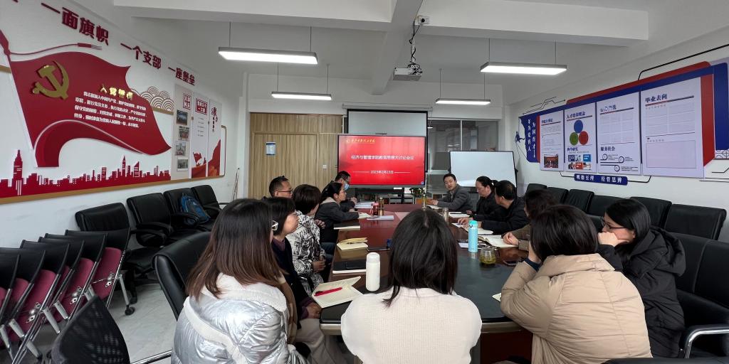 为深入学习贯彻党的二十大精神,进一步统一办学定位思想,凝聚人才培养共识。2月23日下午,经济与管理学院在明志楼北606以党委中心组扩大学习会的形式召开教育思想大讨论专题研讨会。学院班子成员、办公室主任和专业负责人参加了研讨,研讨会由郭鹏院长、何文举书记共同主持。