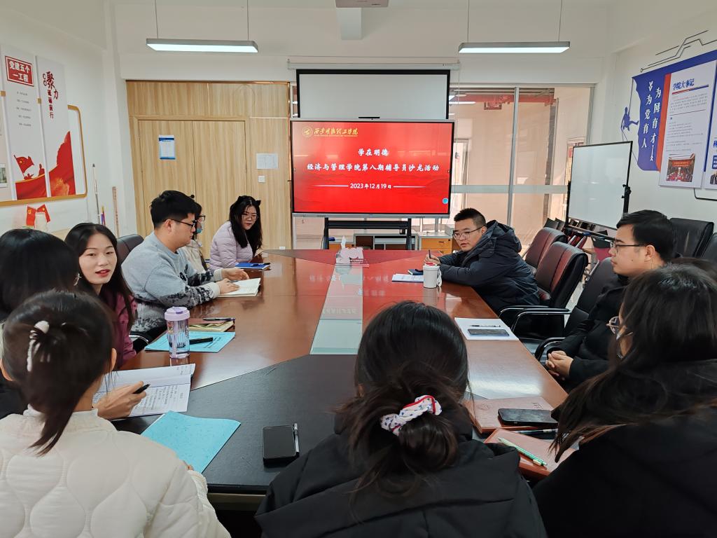 为深入做好立德树人根本任务,提升辅导员队伍素质能力。12月19日上午,经济与管理学院在明志楼北606举办第八期辅导员沙龙活动,学院全体辅导员参加了活动,活动由学院党委副书记冯纪潮主持。