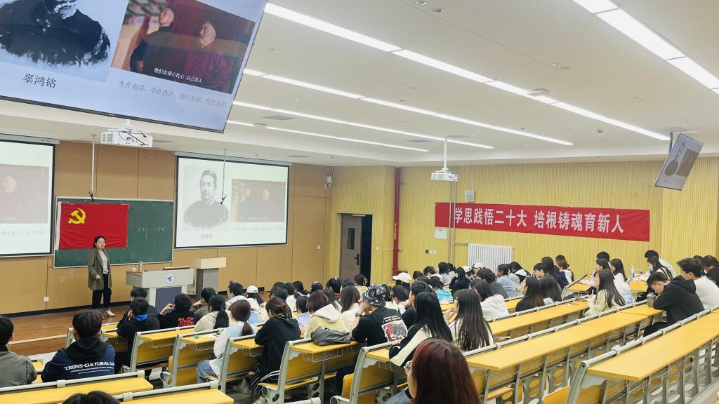 课上,吴梦茜老师以中共一大人物命运看信仰的力量为题,引用大量历史资料,向同学们讲述了中共一大召开的历史背景、基本情况以及参加中共一大的13名代表的人生命运,从南陈北李相约建党到中共一大召开,三种选择、三种命运、三种结局,阐述了中共一大代表的迥异人生。她带领同学们以“云参观”的方式沉浸式游览上海中共一大纪念馆,同学们通过学习,见证了中国共产党从无到有,星星之火可以燎原的历程,感悟革命先辈的风采。吴老师勉励同学们牢记中国共产党人的初心使命,厚植爱党、爱国、爱社会主义的情怀,坚定不移听党话、感党恩、跟党走,让红色基因、革命薪火代代传承。