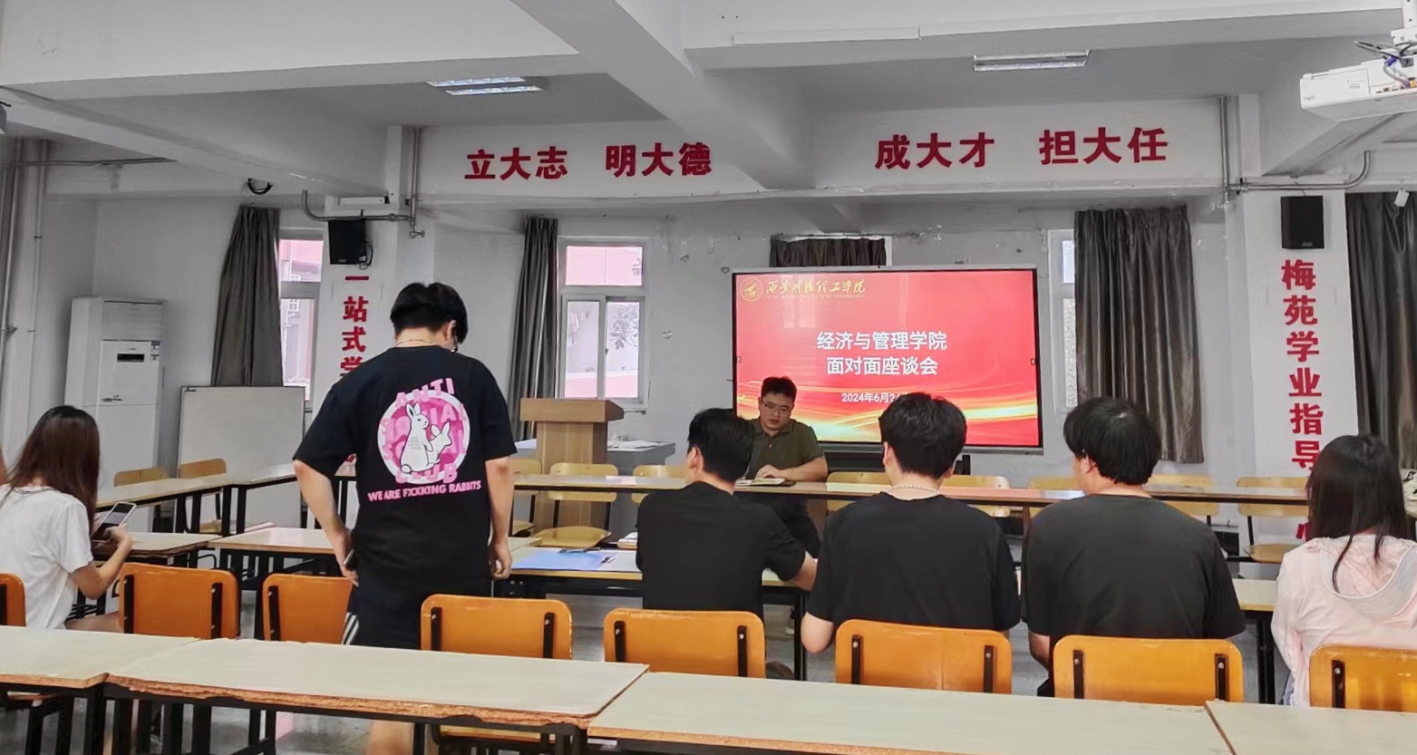 为进一步加强与学生的沟通交流,深入了解学生实际需求,广泛听取学生对学院发展的意见建议,经济与管理学院于6月19日及6月24日分别在榕苑“一站式”学业指导中心及梅苑“一站式”学生社区召开“我与院领导面对面”座谈会,经济与管理学院副院长许萍,经济与管理学院党委副书记冯纪潮,学生代表们参加座谈会,会议由冯纪潮主持。