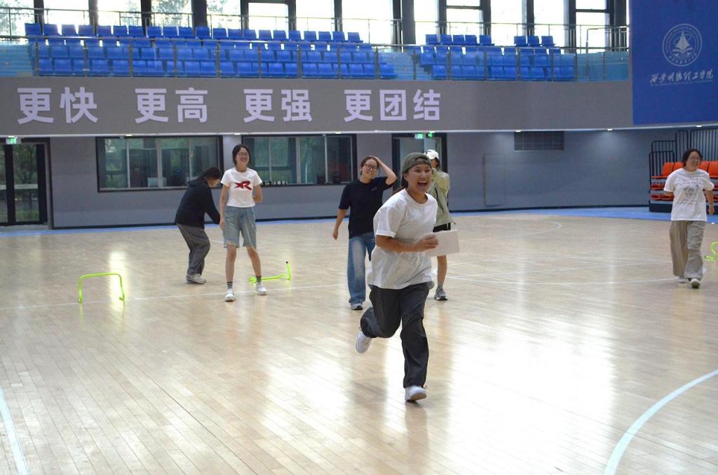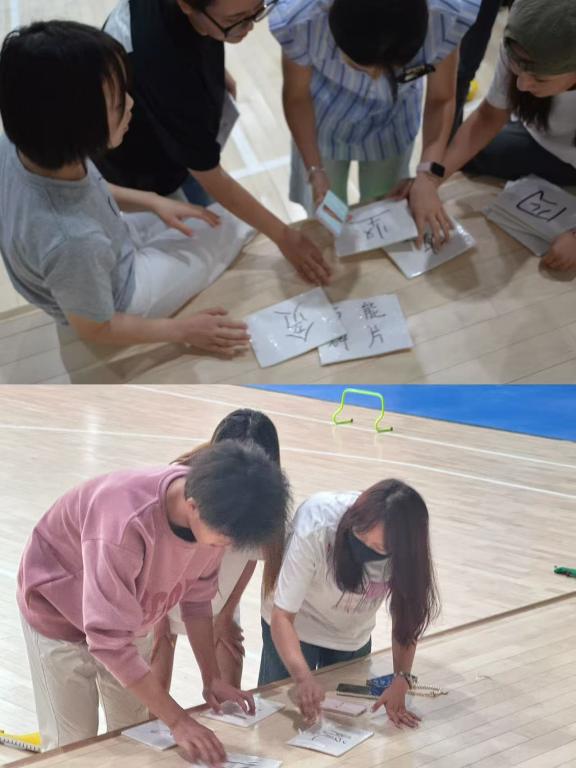 活动以趣味运动项目的形式开展,让同学们在活动中重温党史,传承红色精神。活动设置了“红色密令·夺旗冲锋战”撕名牌以及“党史拼图·红色演绎工坊”两个环节。每个环节需成功回答党史知识方能通关,采用“你做我猜”的肢体语言描绘出“长征精神”“红船精神”“延安精神”等党史相关内容。