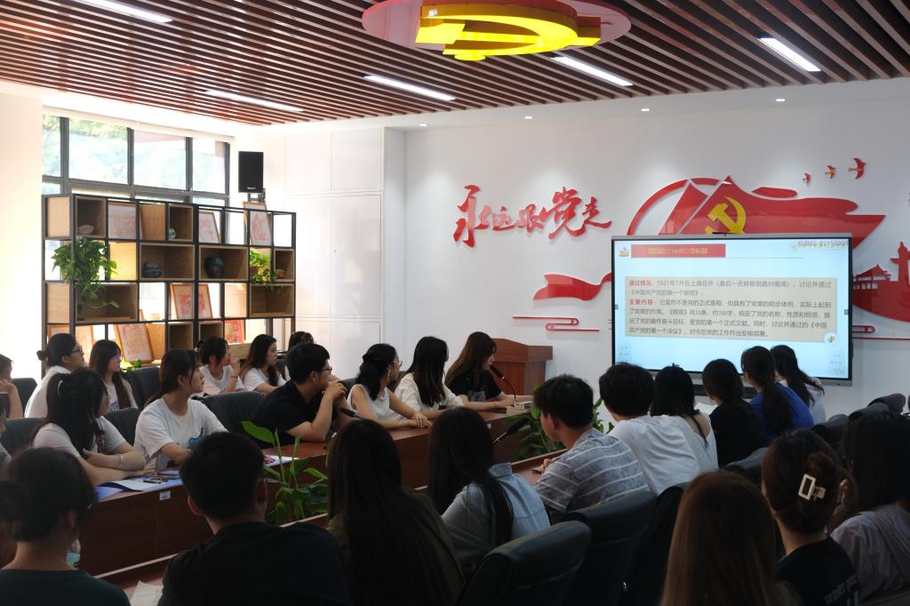 学生第七党支部书记周佳琪以《重温党章发展历程 汲取砥砺奋进之力》为题讲授专题党课。她讲到,新时代青年是时代见证者、建设者和实践者,努力做到志存高远,严于律己,努力提高自身专业素养和理论实践,将自身成就与祖国建设融为一体,持之以恒,不断奋斗,为实现中华民族的伟大复兴和建设社会主义现代化国家贡献青春力量。