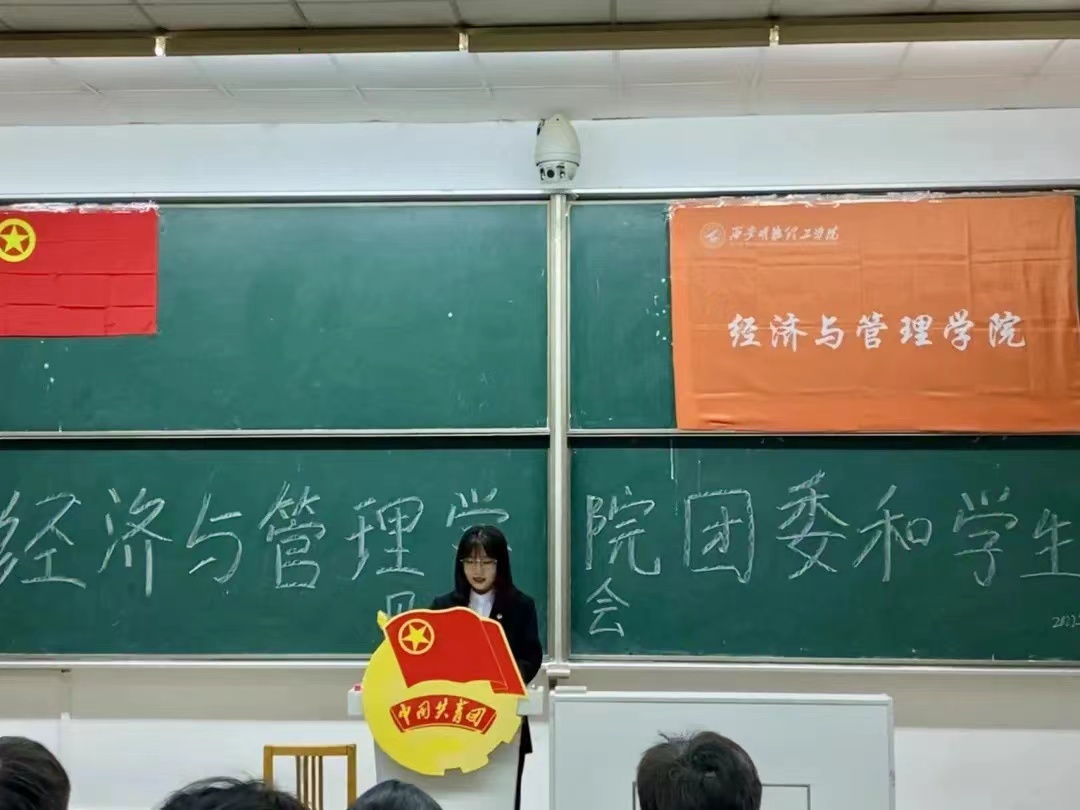 会议第六项、第七项,第五届部门负责人代表、部门工作人员发言,表明未来将会认真工作,充分发挥团学干部的模范带头作用,将经济与管理学院团委和学生会越办越好。