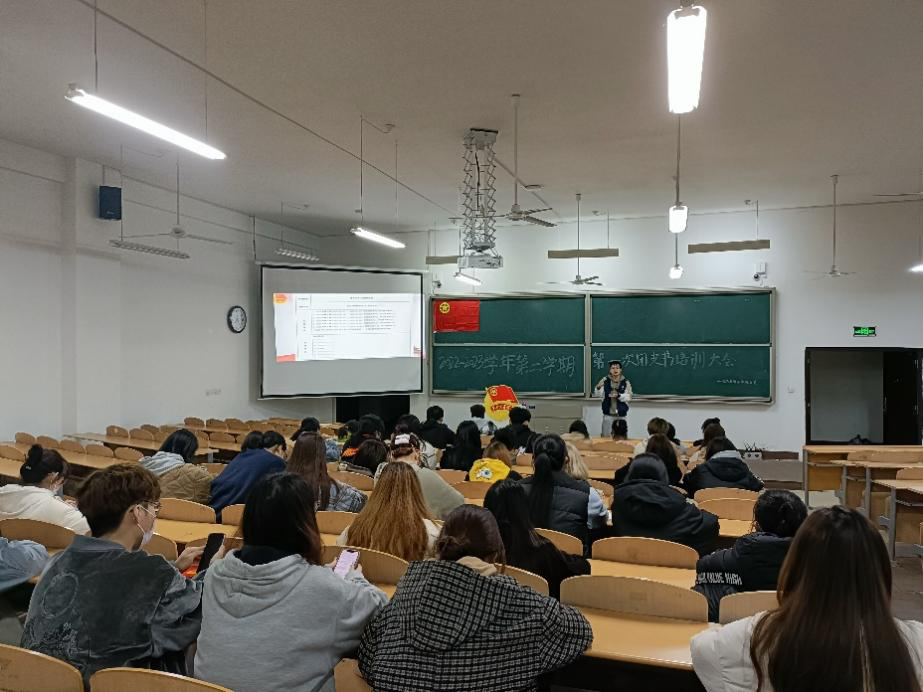 2023年3月23日晚上七点,2022-2023学年第二学期第一次团支书培训大会在四号楼205教室举行。此次大会由经济与管理学院团委组织部部门负责人杨智杰主持,经济与管理学院团委书记耿露老师,团委副书记赵浩然,组织部全体成员和2021-2022级全体团支书参加了此次会议。