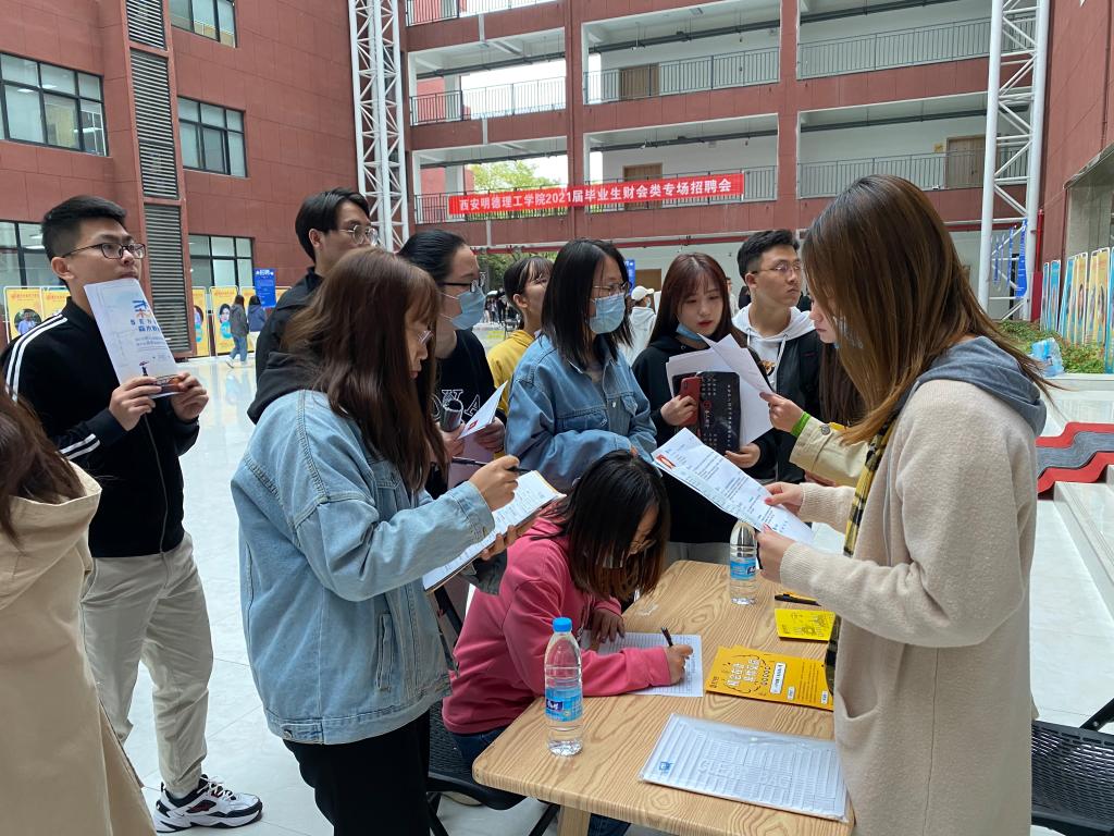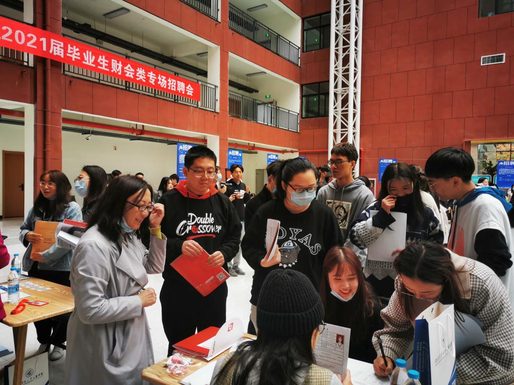 10月27日中午,经济与管理学院联合西安市代理记账行业协会、陕西淘丁实业集团有限公司在明志楼中厅举办了2021届毕业生财会类专场招聘会,参加此次招聘会的企业共29家,包括陕西淘钉智能财税服务有限公司,西安华超电力集团,北京联龙博通电子商务技术有限公司(股票代码:600446),深圳皇嘉财润财务顾问股份有限公司(股票代码:872090),西安快子财税咨询有限公司,陕西中乐盛财财务管理有限公司,西安建利衡创企业管理咨询集团有限公司,西安嘉友财务管理咨询有限公司等多家知名企业,共提供岗位近400个,吸引了近500名毕业生参加。