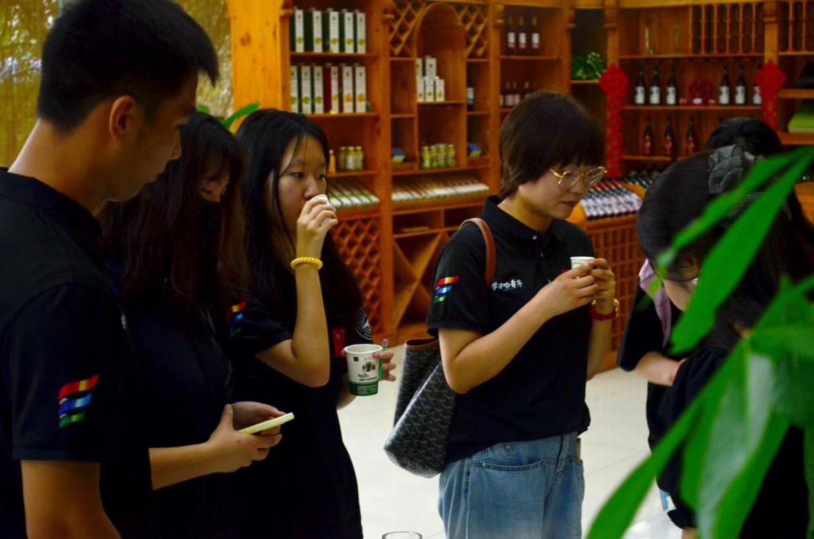 参观产业园区,探索助农路径。团队成员在管委会负责人李伟静的指引下,分别参观了位于国家级眉县猕猴桃产业园区内的陕西齐峰果业有限责任公司、陕西千裕酒业有限公司和陕西百贤酒业有限公司,与企业负责人交流农产品电商的发展现状及存在问题。园区依托猕猴桃作物的多种全供应链成熟业态正引领着当地农业走向乡村振兴的新发展高地,企业在助农兴农上的举措也引发了团队成员的进一步思考。