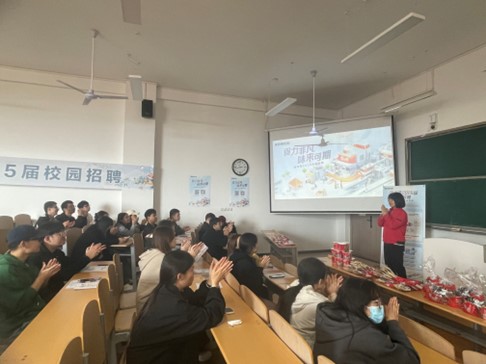 为拓宽毕业生就业渠道,提升毕业生就业质量与水平。10月23日,经济与管理学院邀请康师傅品牌旗下子公司——西安顶益食品有限公司在立德楼405教室进行招聘宣讲,学院2025届毕业生参加了宣讲会,会议由2025届毕业班辅导员井小林主持。