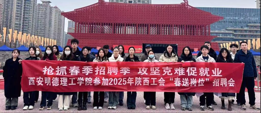 为切实做好2025届毕业生就业工作,推动毕业生高质量充分就业,3月6日,学校招生就业中心就业办公室干事张典点、冀诚,经济与管理学院毕业班辅导员白丽萍、张爽带领40余名毕业生前往隋大兴唐长安城明德门遗址公园参加陕西工会“春送岗位”专场招聘会。