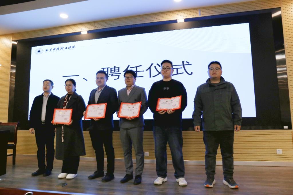 在创业就业导师聘任仪式上,何文举、冯纪潮向霍雪梅、梁刚、郭金栗、杨时锟四位企业负责人颁发了创业就业导师聘书。