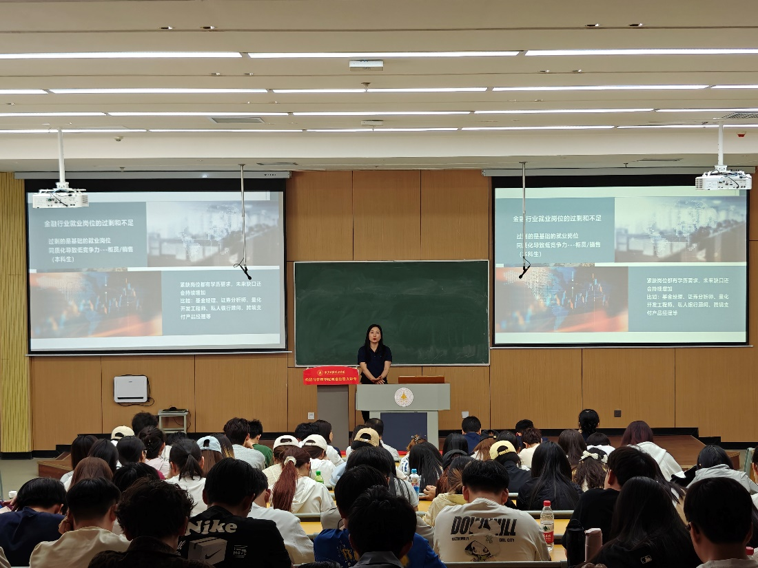 在专题讲座环节,张文娜以“金融专业大学生职业生涯规划”为题,结合当前金融行业发展新趋势,从职业定位、能力提升、求职技巧等方面进行了深入浅出的讲解。她强调,在数字经济时代,金融专业学生既要夯实专业基础,又要培养数字化思维和创新能力,以适应经济社会发展和市场对人才的需求。