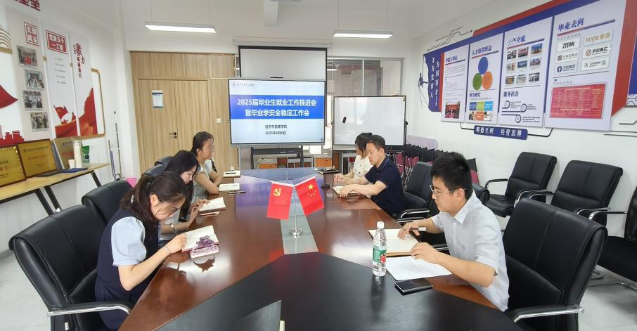 为推进2025届毕业生充分就业,做好毕业季学生安全稳定工作,6月6日,经济与管理学院在明志楼北606召开2025届毕业生就业工作推进会暨毕业季安全稳定工作会,学院党委书记兼行政副院长何文举、学校招生就业中心就业办公室干事王鹏、学院2025届毕业班辅导员参加了会议。会议由何文举主持。