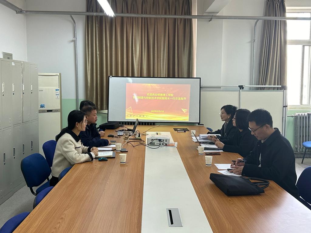 电气工程及其自动化专业调研组赴西安外事学院调研。西安外事学院自动化系主任张政莲及相关部门教师参调研交流会。调研组主要学习了该校在电气类专业OBE教学改革方面的实践经验对西安外事学院在课程模块化设计、企业定制班培养模式等方面的探索进行了详细考察。双方还就如何结合行业标准优化课程体系、提升学生工程实践能力进行了深入的讨论。