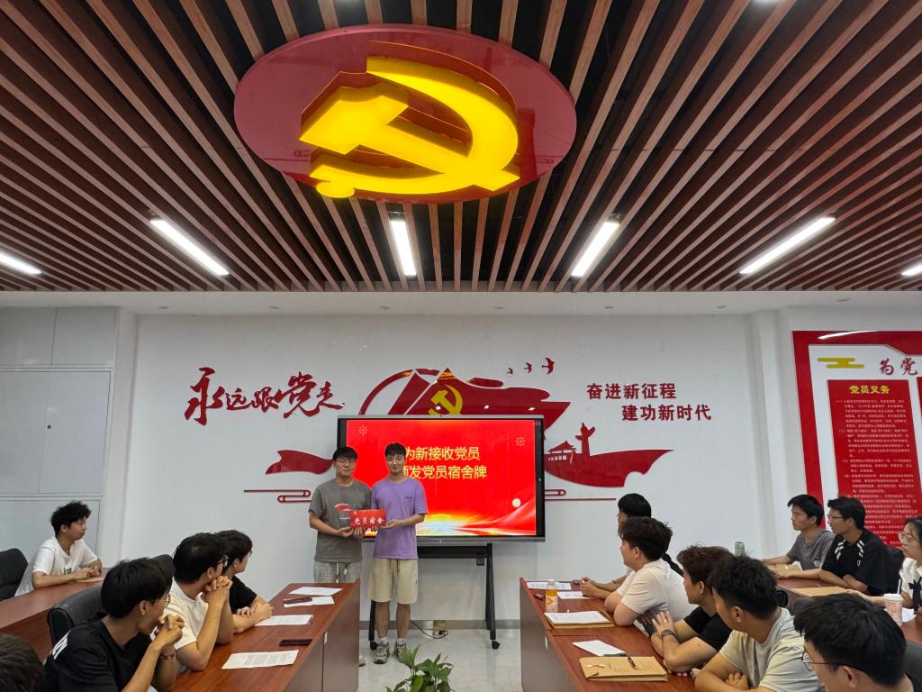 在接下来的环节中,毕业生党员王如鑫同志为新接收的预备党员发放了党员宿舍牌。这一象征着党员身份传承与延续的举动,让在场的每一位党员都感受到了沉甸甸的责任与使命。新接收的预备党员们接过党员宿舍牌,脸上洋溢着自豪与坚定,纷纷表示将在今后的学习和生活中积极发挥党员作用,不辜负党组织的信任与期望。