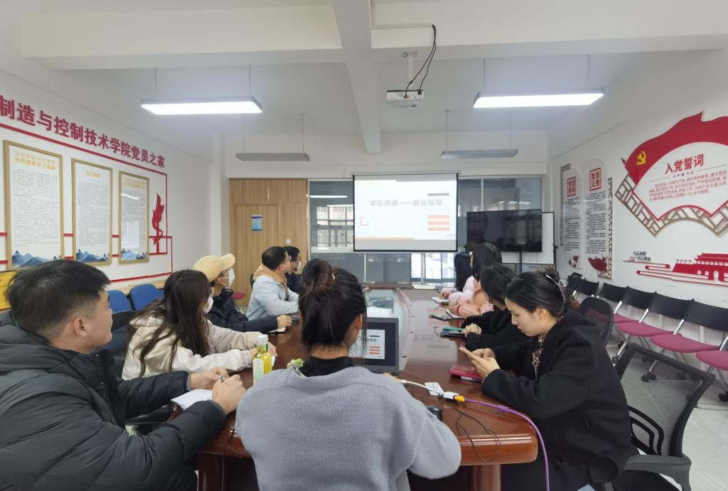 加强新时代高校就业指导教师队伍建设,扎实推进学院就业指导与服务工作,智能制造与控制技术学院“智享”辅导员工作室于11月27日在明志楼北304开展就业指导交流暨工作推进会。学院党委书记陈雪彬、党委副书记曾凯、招生就业中心就业办公室王鹏及学院全体辅导员参加会议,会议由陈雪彬主持。