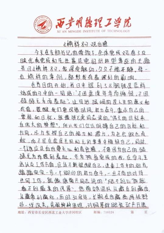 大家一起观看了“八一勋章”获得者钱七虎、勤学笃行躬耕特教战线32年的刘玲琍、将论文写在祖国大地的唐菊兴、“最美退役军人”吴惠芳、“苍山大医”李桂科、“花儿书记”热孜万古丽·沙吾提和“千万工程”的典范余姚市梁弄镇横坎头村的先进事迹。他们忠实践行习近平新时代中国特色社会主义思想,以实际行动诠释了共产党人恪守初心、勇担使命的价值追求。师生党员们在观影过程中纷纷记录下了自己的所感所悟,在观看节目后一致表示,作为党员要以榜样为标尺,学习榜样精神,汲取榜样力量,要始终坚定理想信念,加强党性修养,牢固树立为人民服务的宗旨,弘扬无私奉献的精神,从自身做起、身边小事做起,立足本职工作,明确自身努力的方向,在平凡的岗位上做出不平凡的贡献。在实干和担当中展现先锋模范作用,以强烈的使命担当,把个人的奋斗融入国家命运中,为实现中华民族伟大复兴贡献智慧和力量。