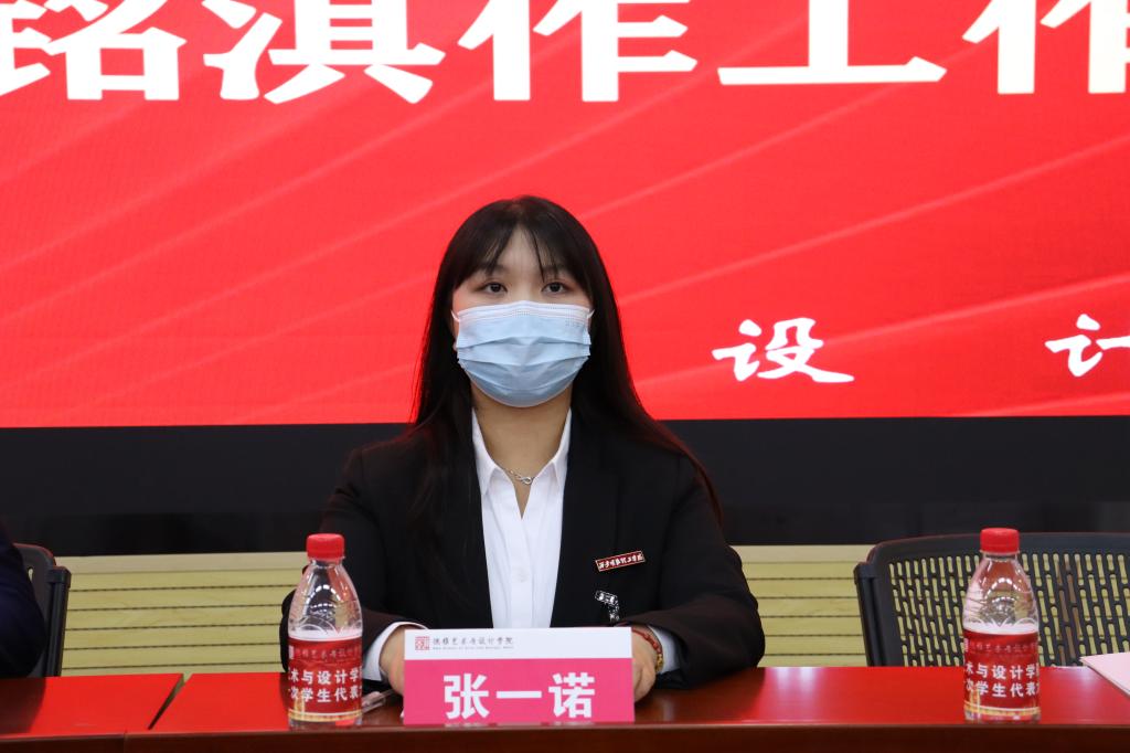 校学生会执行主席张新智致辞,作为校级学生会代表,她对艺术与设计学院学生会提出了四点要求,一是要紧密围绕同学的实际需要,要以同学的参与度和满意率作为评价尺度;二是要提高服务能力和服务水平,培育服务项目,认真服务同学成才成长;三是要集中优势资源,打造精品活动,打牢学生会工作阵地;四是要加大干部培养力度,打造一支高水平的学生干部队伍。