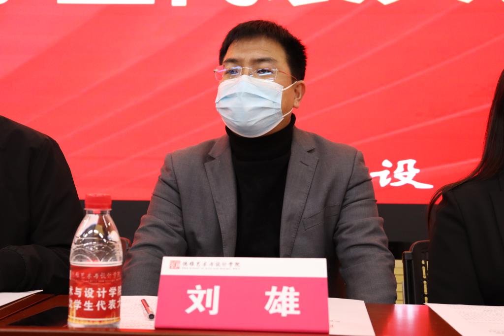 艺术与设计学院党委副书记刘雄讲话,他代表学院党委对大会的召开表示祝贺,向嘉宾们表示诚挚的欢迎和衷心的感谢,向与会代表、学生青年表达了亲切的问候。他肯定了学院团学工作取得的成就和为学院发展作出的积极贡献,并对全院青年提出了希望和要求:一是要树立远大志向,坚定理想信念。要不断增强做中国人的志气、骨气、底气,树立为祖国为人民永久奋斗、赤诚奉献的坚定理想;二是要提升道德修养,锤炼高尚品格。新时代中国青年要把正确的道德认知、自觉的道德养成、积极的道德实践紧密结合起来,不断修身立德,打牢道德根基,让自己的人生道路走得更正、走得更远;三是要珍惜学习时光,练就过硬本领。新时代明德青年不论是成就自己的人生理想,还是担当时代的神圣使命,都须珍惜韶华、不负青春,努力提高内在素质,锤炼过硬本领。