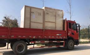 图1 联合实验室设备运送到位 图2 实践教学设备卸车运输