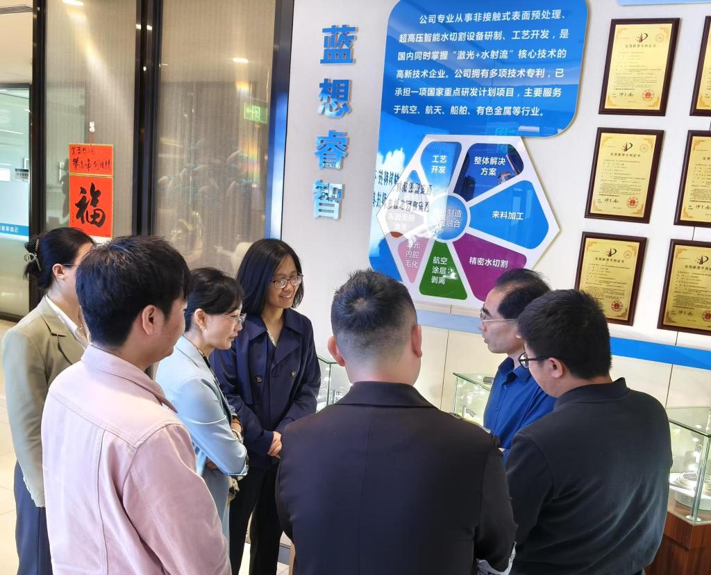 西安蓝想新材料科技有限公司在激光清理、双高压清洁、智能控制等先进技术持续深耕,有多项非接触式表面预处理实用新型专利和发明专利。学院一行在西安蓝想新材料科技有限公司领导的陪同下,首先参观了重点实验室、研发中心、生产车间等,近距离感受企业技术实力与创新成果。