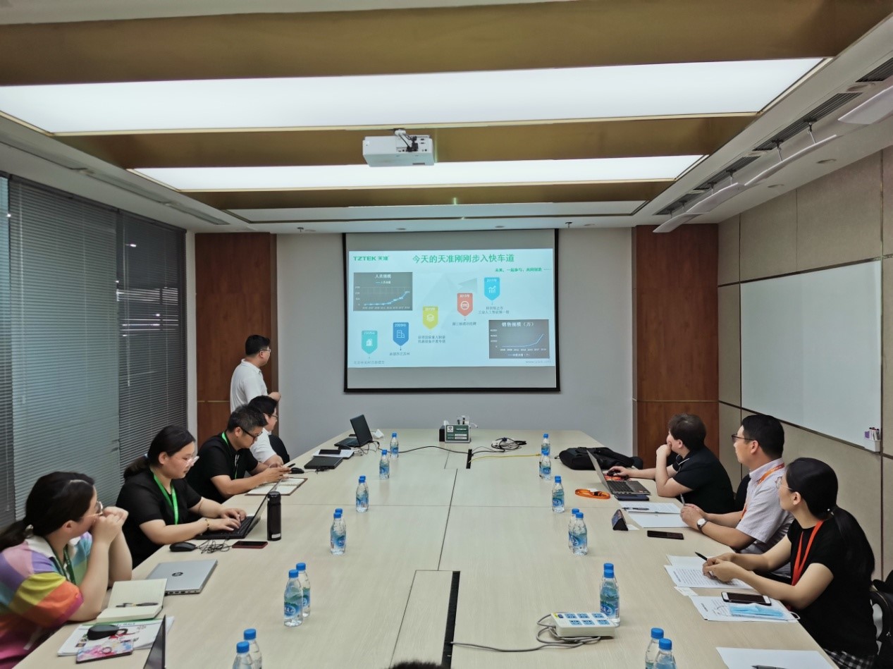 首先,双方进行了单位情况介绍。并参观了天准公司的光伏硅片检测设备、3D玻璃曲面检测设备、激光直接成像设备、点胶检测一体设备和智能仓储等设备的生产、组装和调试车间,了解其研发团队的相关工作内容和方式。