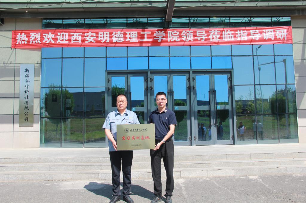 在全体与会人员的见证下,吴党社和陈雪彬共同为新疆金叶科技有限公司实习实训基地授牌,并一同参观了企业的生产车间。