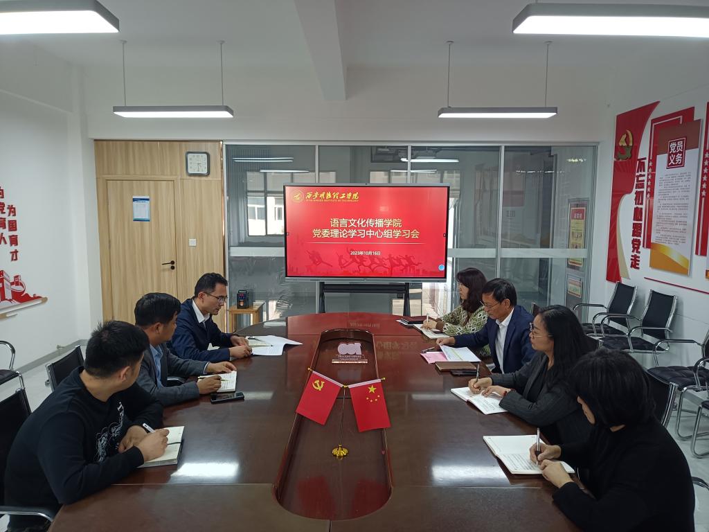 10月16日下午,语言文化传播学院在明志楼406会议室召开党委理论学习中心组学习会,学院党委理论学习中心组全体成员参加学习。会议由学院党委书记赵旭东主持。