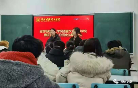 语言文化传播学院团工委于2020年12月28日19:00在树德楼311教室组织了德语专业学习经验交流会。参加此次研讨会的有2018级优秀学生代表史吟蝶、任豆以及2020级德语专业全体学生。