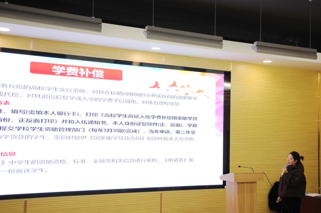 分享会结束后,学校征兵工作站卓西洁老师全面而深入地向同学们介绍了大学生应征入伍相关内容,包括入伍基本条件和要求、优惠政策和待遇保障、入伍基本流程等内容。同时,她结合自身经历,鼓励同学们增强国防观念,积极投身国防事业。