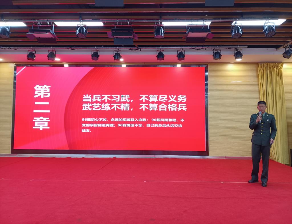 最后,学校征兵工作站站长李传斌老师向同学们详细讲述了国家对于大学生应征入伍的相关政策、入伍条件、入伍基本流程、服役待遇与退伍补偿等内容。他结合自身经历,告诉同学们当兵的十大好处,以此来鼓励同学们踊跃应征入伍,到部队中成长和锻炼自己,把爱国之心化为报国之行。