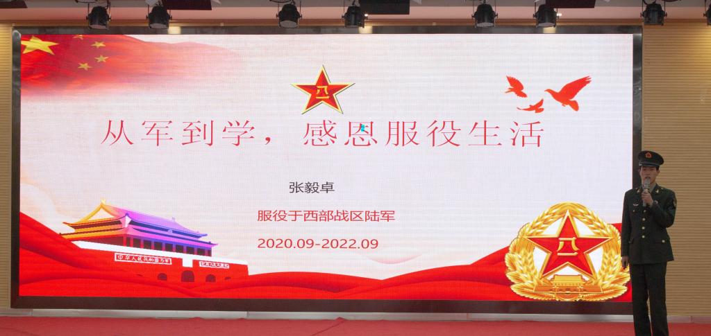 谢宇轩同学向我们分享了他在军旅生涯中的成长经历。在服役期间,他积极克服不足,努力提高自身本领,最终成长为一名“四有优秀士兵”。他说“军人的代名词就是‘纪律’‘责任’与‘担当’,两年的部队生活,让我明白什么叫纪律,什么是责任,如何去担当,这些让我不再迷茫”。