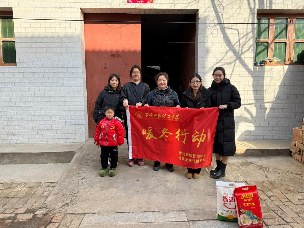为深入了解学生家庭实际情况,宣传国家资助政策,增强思想教育和帮扶工作的针对性和实效性,实现精准资助和资助育人,1月24日,语言文化传播学院辅导员张兴、孙子怡、黄雪琪、梁爽一行四人前往西安市鄠邑区和临潼区困难学生家庭,送去学校的关怀和慰问。