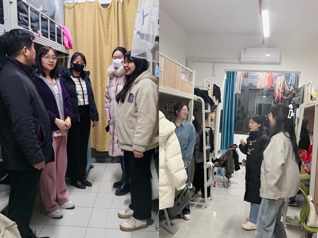 在宿舍走访过程中,辅导员与同学们进行了亲切地交流,了解了他们的身体状况、心理状态与假期生活情况,并对宿舍的卫生状况、水电设施以及安全隐患进行了检查,确保同学们身心健康与外部环境安全,为开学做好充分的准备。同时,老师们也在检查时给予各同学相应的指导和建议,力求共同营造出一个健康舒适的住宿环境,为同学们新学期的学习与生活创造一个好的开端。