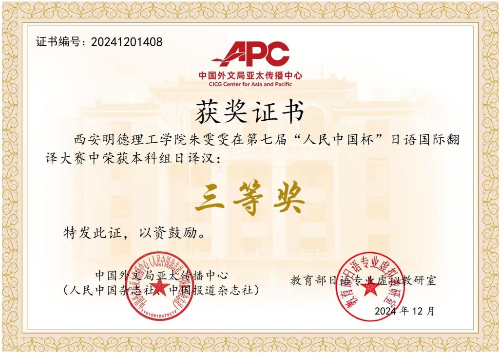 第七届“人民中国杯”日语国际翻译大赛日语专业学生创下佳绩