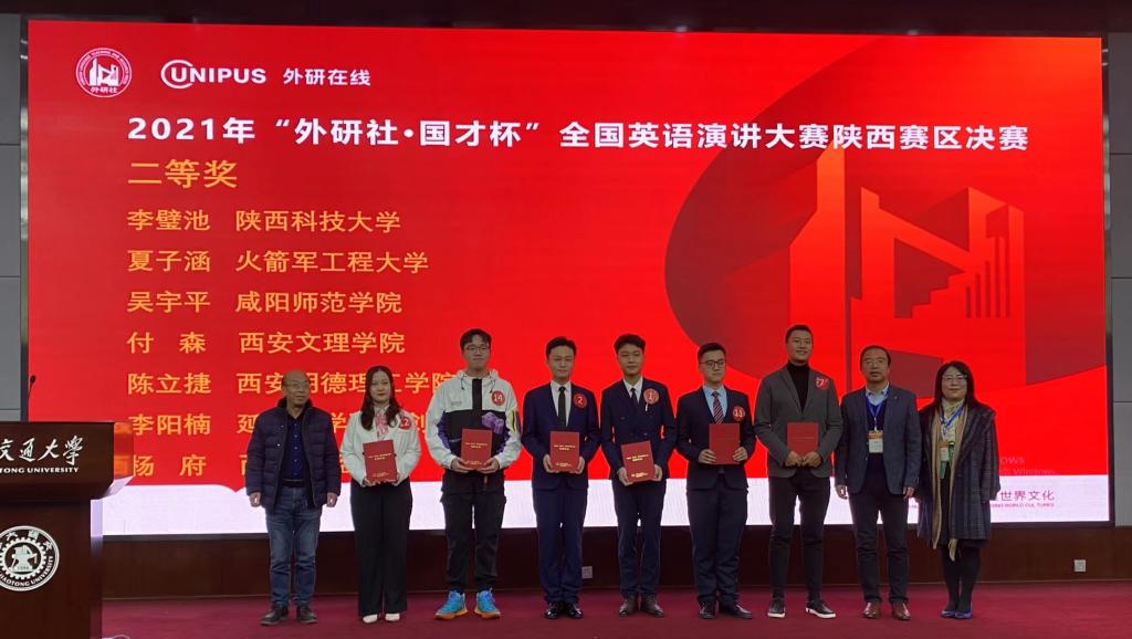 11月6日,LETOU官网7名学生参加了陕西省赛区“外研社·国才杯”全国英语演讲、阅读、写作大赛,与全省48所高校的百余名学生同台竞技,在竞争激烈的比赛中斩获二等奖1项,三等奖6项。