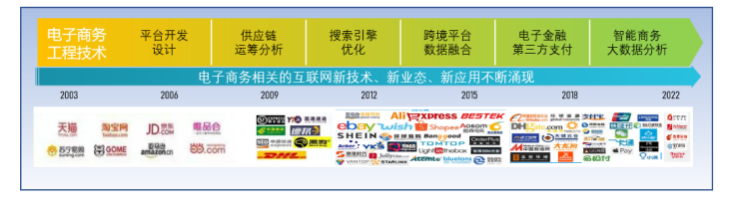电子商务专业紧扣工学发展脉络,培养重点从电子商务平台开发向智能商务数据分析和大数据挖掘、电子金融支付等方向不断发展,适时调整培养目标和培养方案,本专业始终将新知识、新技能、新方法贯穿到人才培养之中。经过四年的学习,能熟练运用计算机网络和信息技术,从事跨境电商系统的开发、金融电子支付技术、商务数据的分析与处理、网络创业等工作。