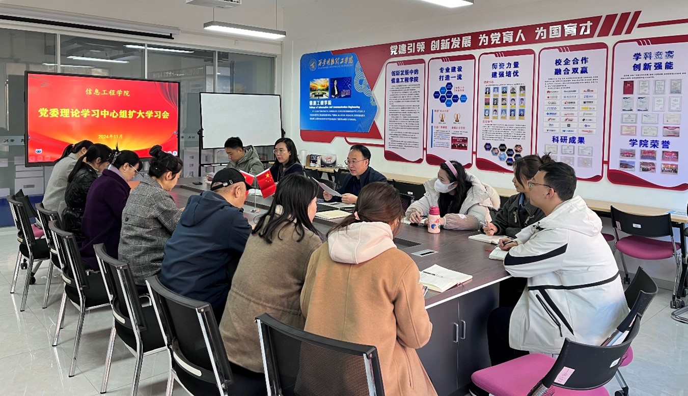 11月28日,信息工程学院党委在明志楼北206会议室召开党委理论学习中心组扩大学习会,聚焦党的二十届三中全会主题,进一步深化学习宣传贯彻实效。学院理论学习中心组成员、党支部书记参加会议,会议由学院党委书记肖千春主持。