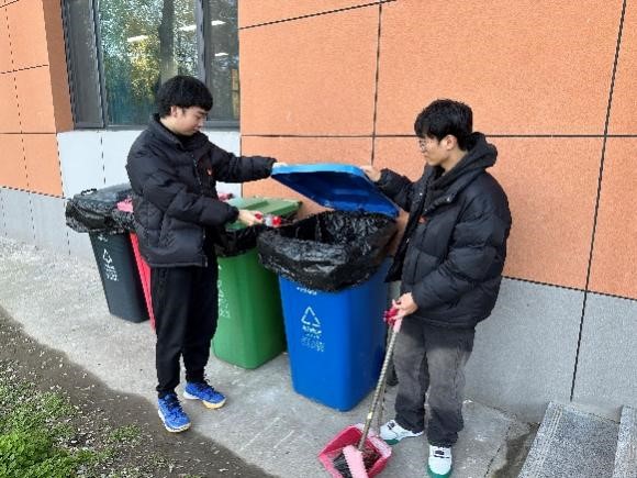 在实践活动环节,党员分小组在学校的教室、走廊等区域,检查并整理垃圾桶,确保垃圾正确分类投放。积极参与到垃圾分类实践中,把捡拾到的垃圾按照垃圾分类的要求投放到相应的垃圾桶内。