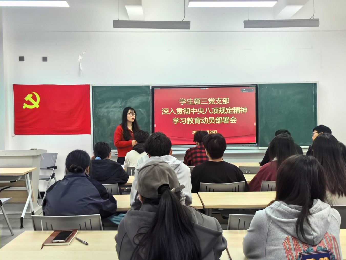 此次动员部署会的召开,标志着学生第三党支部深入贯彻中央八项规定精神学习教育正式启动,为后续学习活动的有序开展奠定了坚实基础。