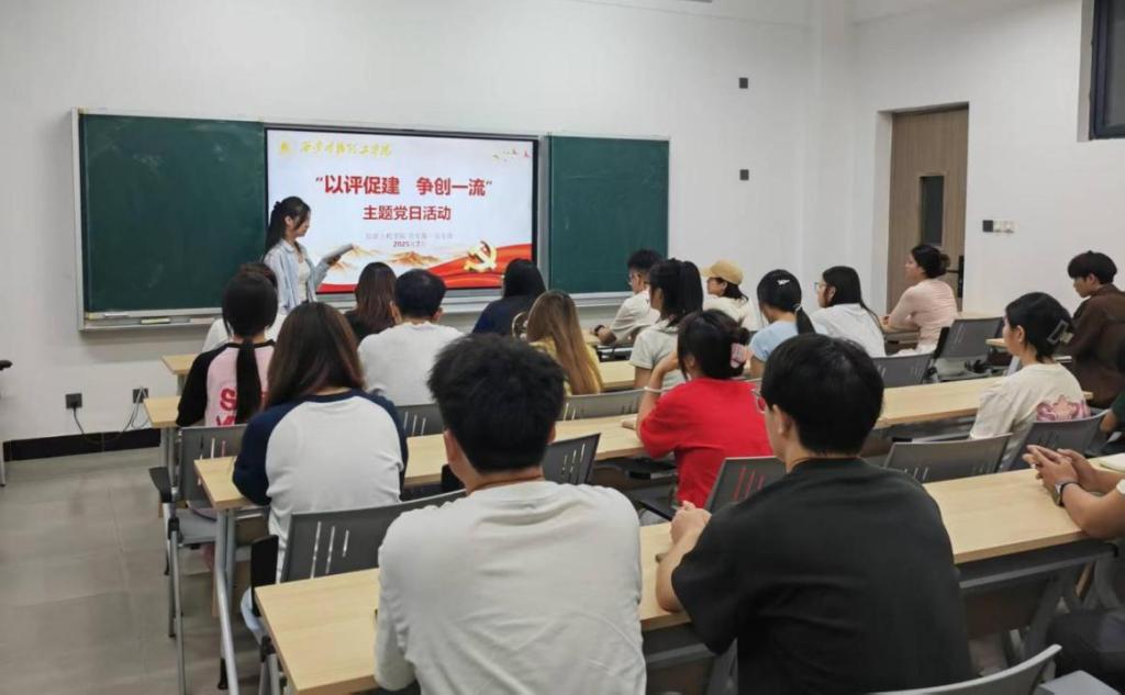 为深入贯彻落实新时代党的教育方针,进一步提升学生党支部建设质量,持续强化党员担当作为意识。7月2日,信息工程学院学生第一党支部在培德楼107教室组织开展“以评促建争创一流”主题党日活动。此次活动由支部书记张蓉主持,支部全体党员参加。
