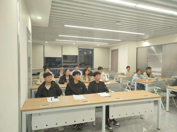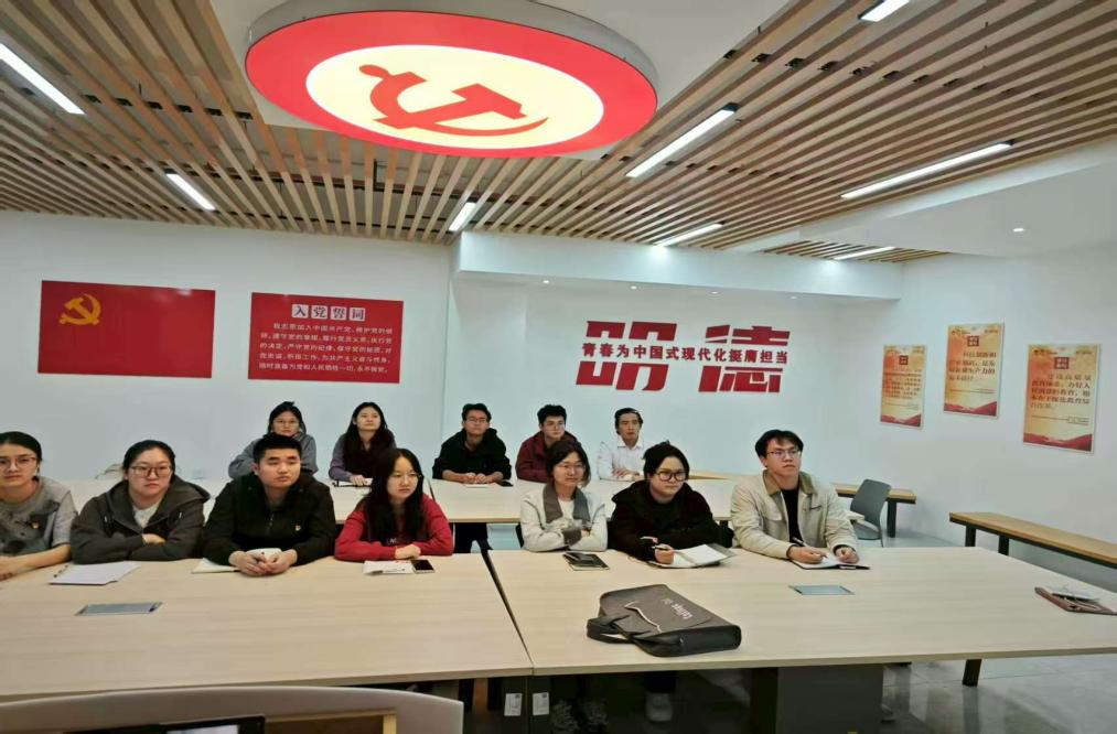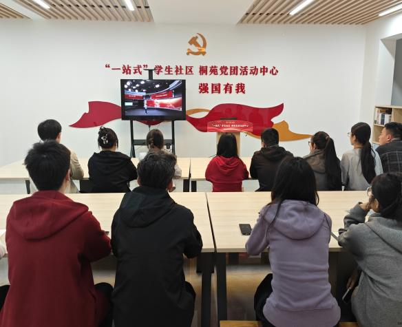 本次学习会采用“线上+线下”相结合的方式,在校党员在桐苑党团服务中心,校外实习党员在陕西航城蓝鸥教育科技有限公司402教室同步参加。