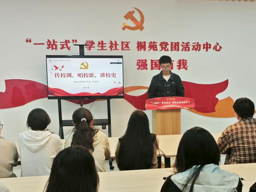 为深化党员对学校精神文化的理解与认同,筑牢理想信念根基,9月28日下午,学生第三党支部在桐苑党团服务中心开展“传校训、唱校歌、讲校史”主题党日活动,活动由组织委员赵民主持,支部全体党员参会。