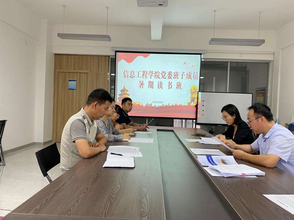 为了进一步武装头脑、开阔视野、明确方向,掌握办学治校理论和应对新情况新问题的方法,增强工作的责任感和使命感。9月8日上午,信息工程学院在明志楼北206举办党委班子成员暑期读书班,学院党委班子成员参加。