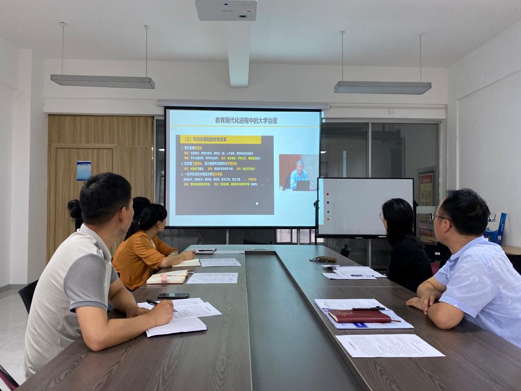 学院党委书记肖千春首先进行了简短的开班动员,强调了举办暑期读书班的重要意义,明确了具体学习安排,对全体委员提出了“认真学习、做好笔记,学有所思、撰写体会,克服矛盾、按时参加”的要求。随后,共同观看了知名教育家、北京师范大学和东南大学教授、博士生导师钟秉林主讲的专题讲座《教育现代化进程中的大学治理》。