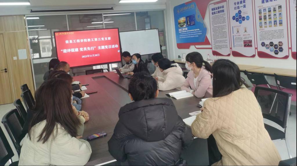 为了进一步推动党员的先锋模范作用,以实际行动促进学校本科教学合格评建工作,信息工程学院教工第三党支部于2023年11月30日开展了一场主题为“迎评促建 党员先行”的党日活动。