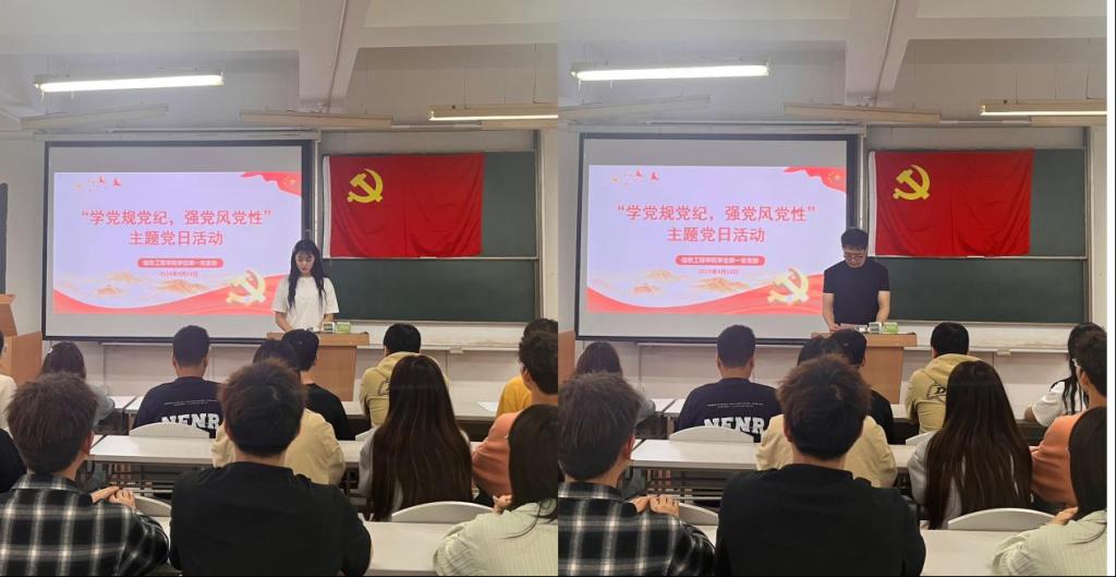 为认真学习贯彻《中国共产党纪律处分条例》,加强党纪学习教育,增强纪律意识。4月18日下午,学院学生第一党支部在二号教学楼212教室开展“学党规党纪 强党风党性”党日活动。本次活动由支部书记张蓉主持,在校党员及部分入党积极分子参加。
