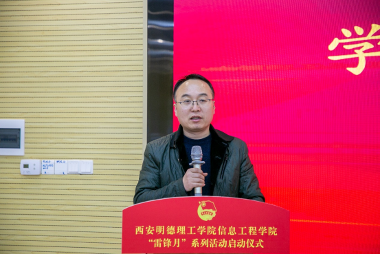 为贯彻落实校党委、团委关于“弘扬雷锋精神”工作部署,结合学院党委工作安排。3月3日,信息工程学院团委在建德楼201举办“传承雷锋精神,争做时代新人”雷锋月系列活动启动仪式。信息工程学院党委书记肖千春、副书记高长江及辅导员参会,启动仪式由学院团委书记王佳龙主持。